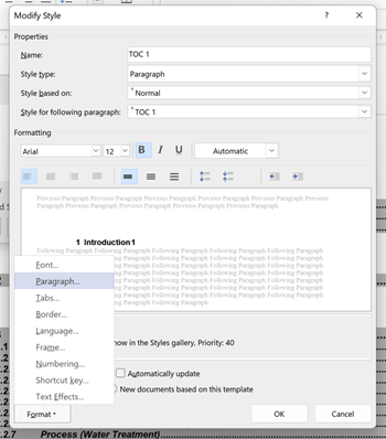 Scroll to find the ‘TOC1’ (that’s the style used for the top-level Table of Contents items)
